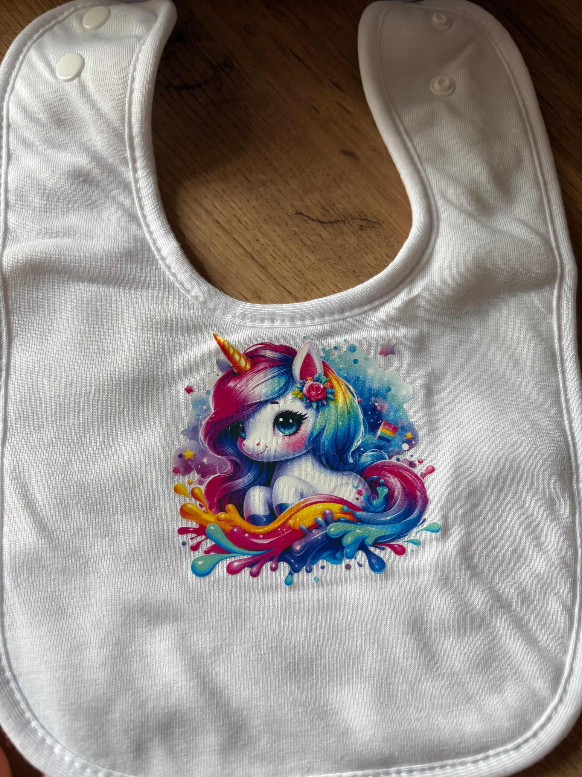 Bavoir Bébé Personnalisé princesse licorne - Personnage Animé Fait Main