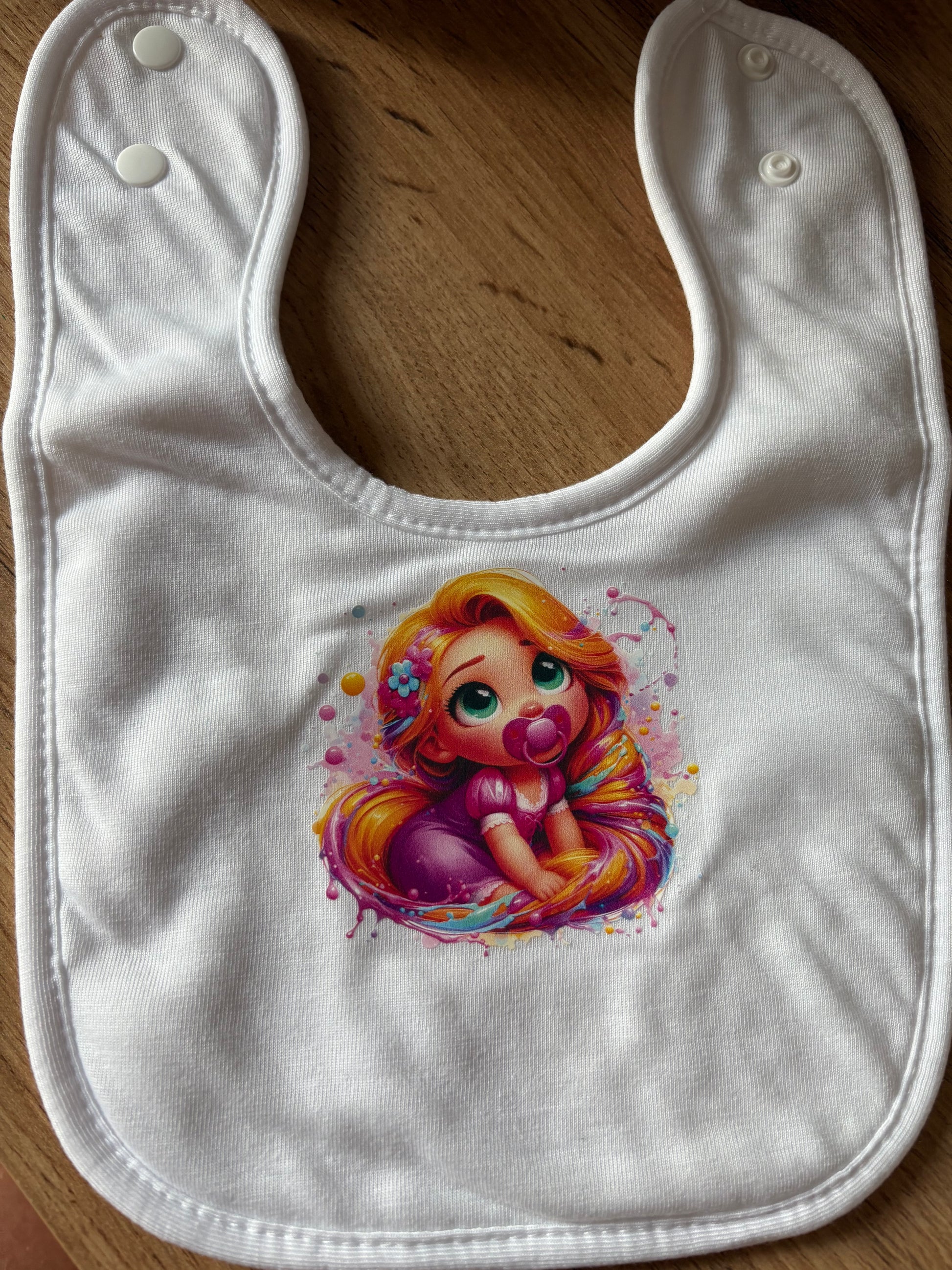 Bavoir bébé princesse raiponze personnalisée prénom fait main