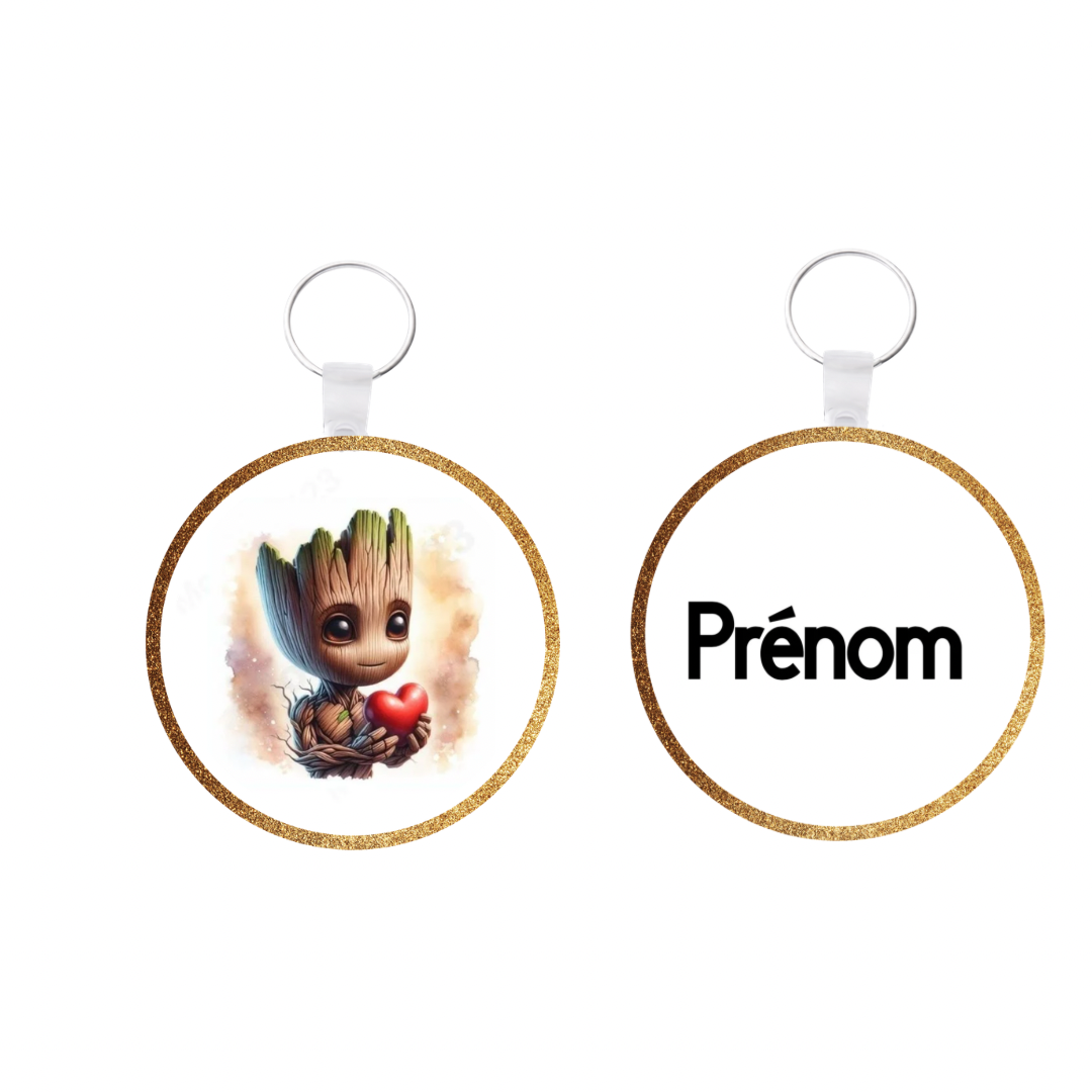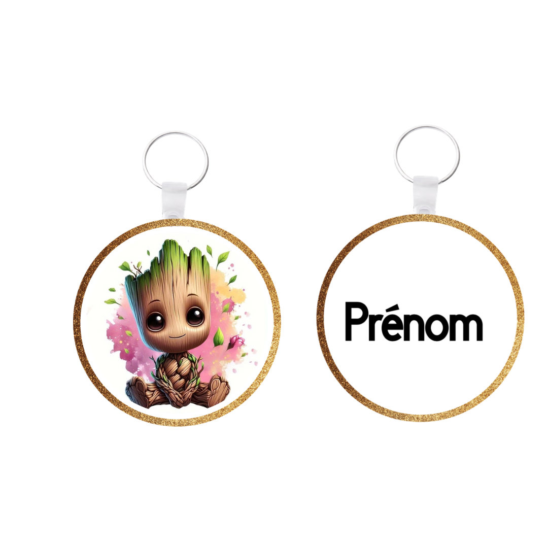 Porte-clé rond Groot personnalisé – Prénom au choix