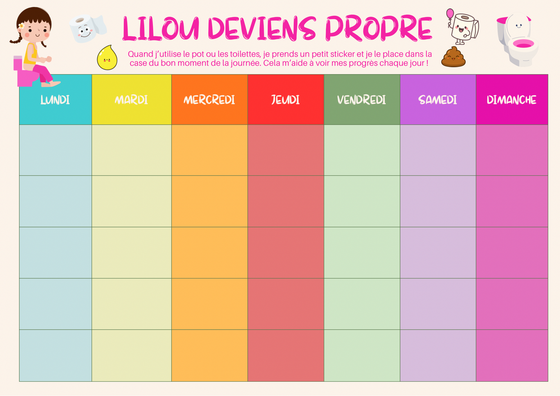 Ce tableau de propreté personnalisé est idéal pour accompagner votre enfant dans l’apprentissage du pot et des toilettes. Illustré avec des pictogrammes faits main, il offre un support visuel clair, motivant et bienveillant.
